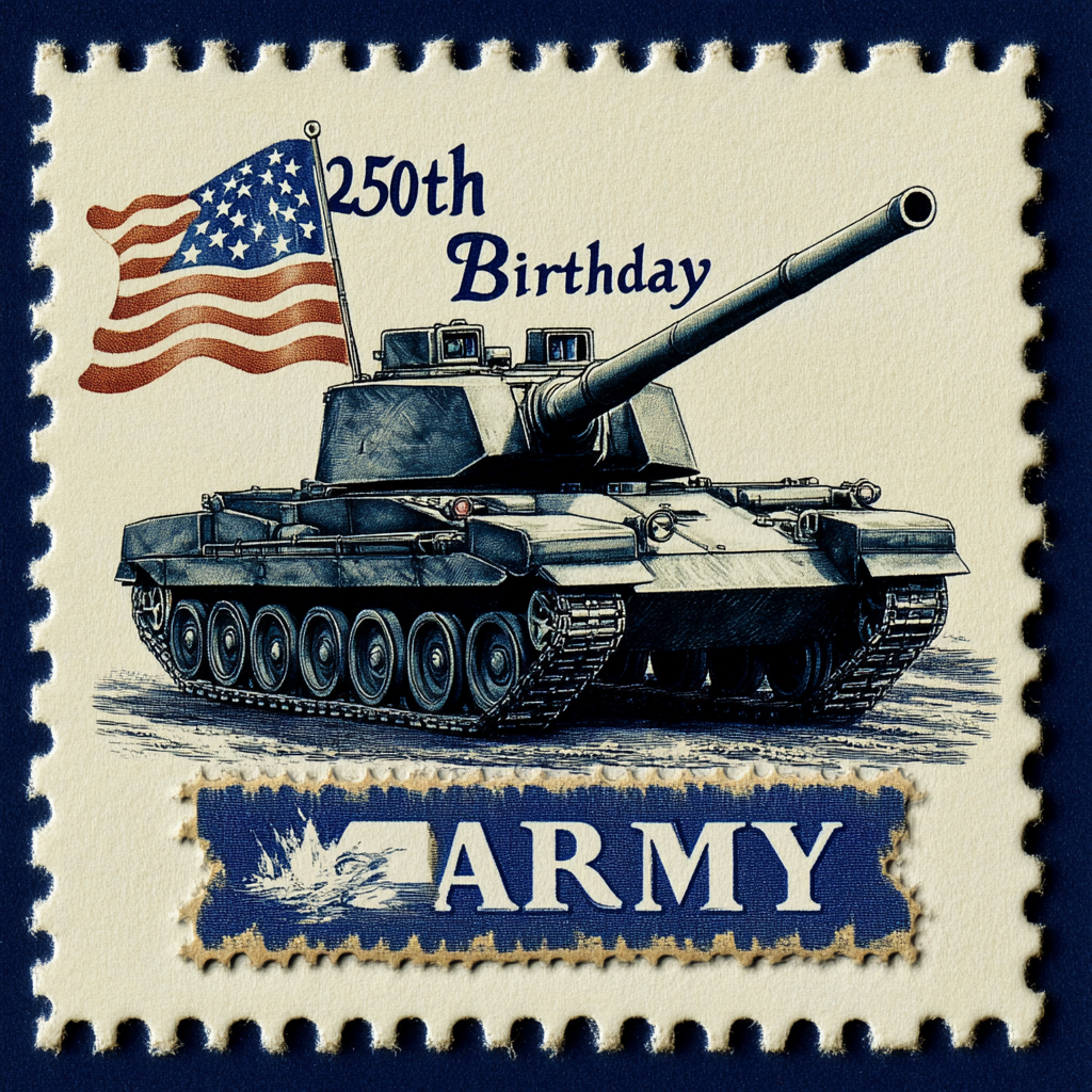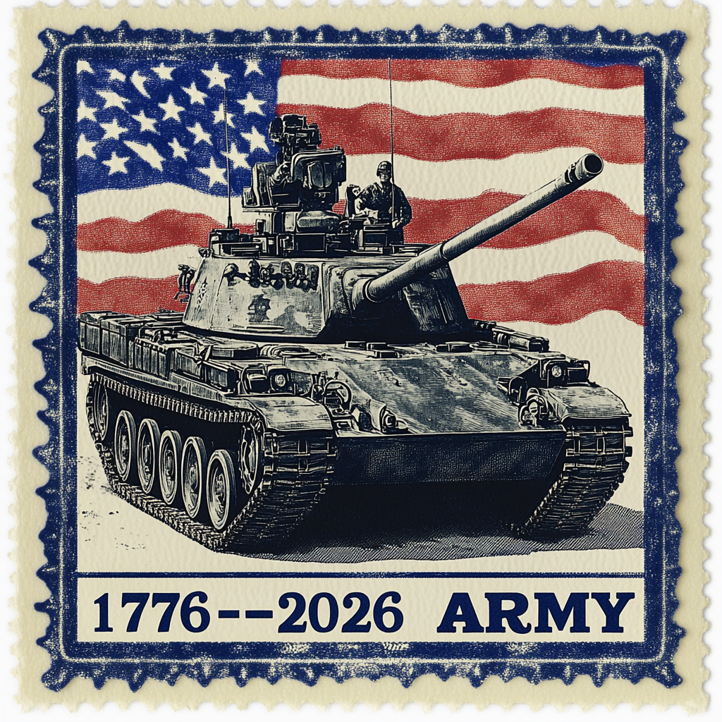 5 Unique Designs: Each stamp features a different tank illustration, American flag elements, and Army-themed artwork — all honoring 250 years of military excellence.