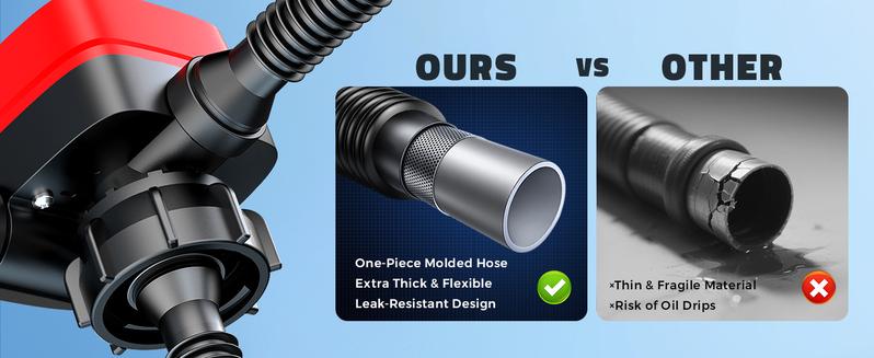 - Reliable & Safe ConstructionBuilt with a heavy-duty ABS housing, flexible discharge hose, and integrated leak-proof structure. Unlike ordinary hoses that crack over time, this gas can pump is impact-resistant, corrosion-resistant, and safe for long-term outdoor use.