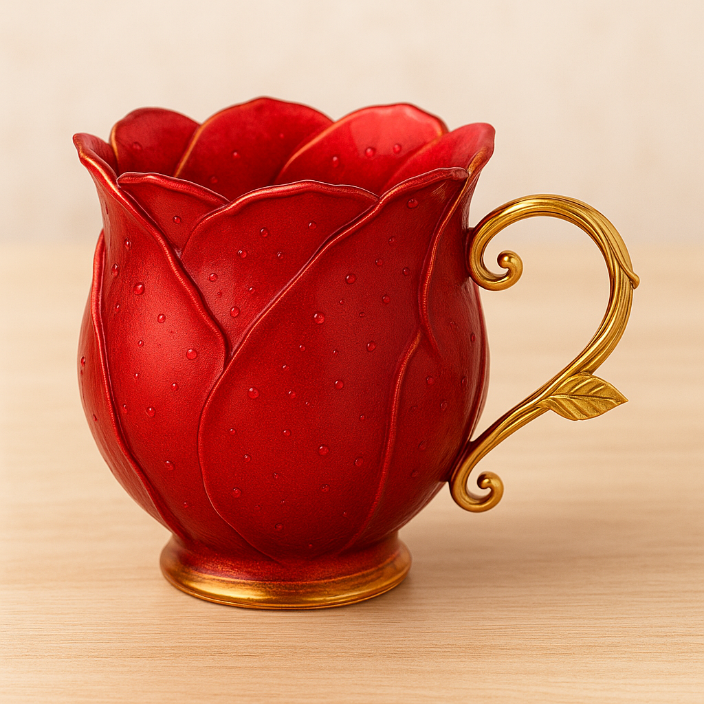 🌹The Rose Mug, in deep ruby red and brushed with gold, embodies the beauty of love that withstands time. Each petal-shaped curve glows softly under the light — a daily reminder that love, in all its forms, is both strength and tenderness.