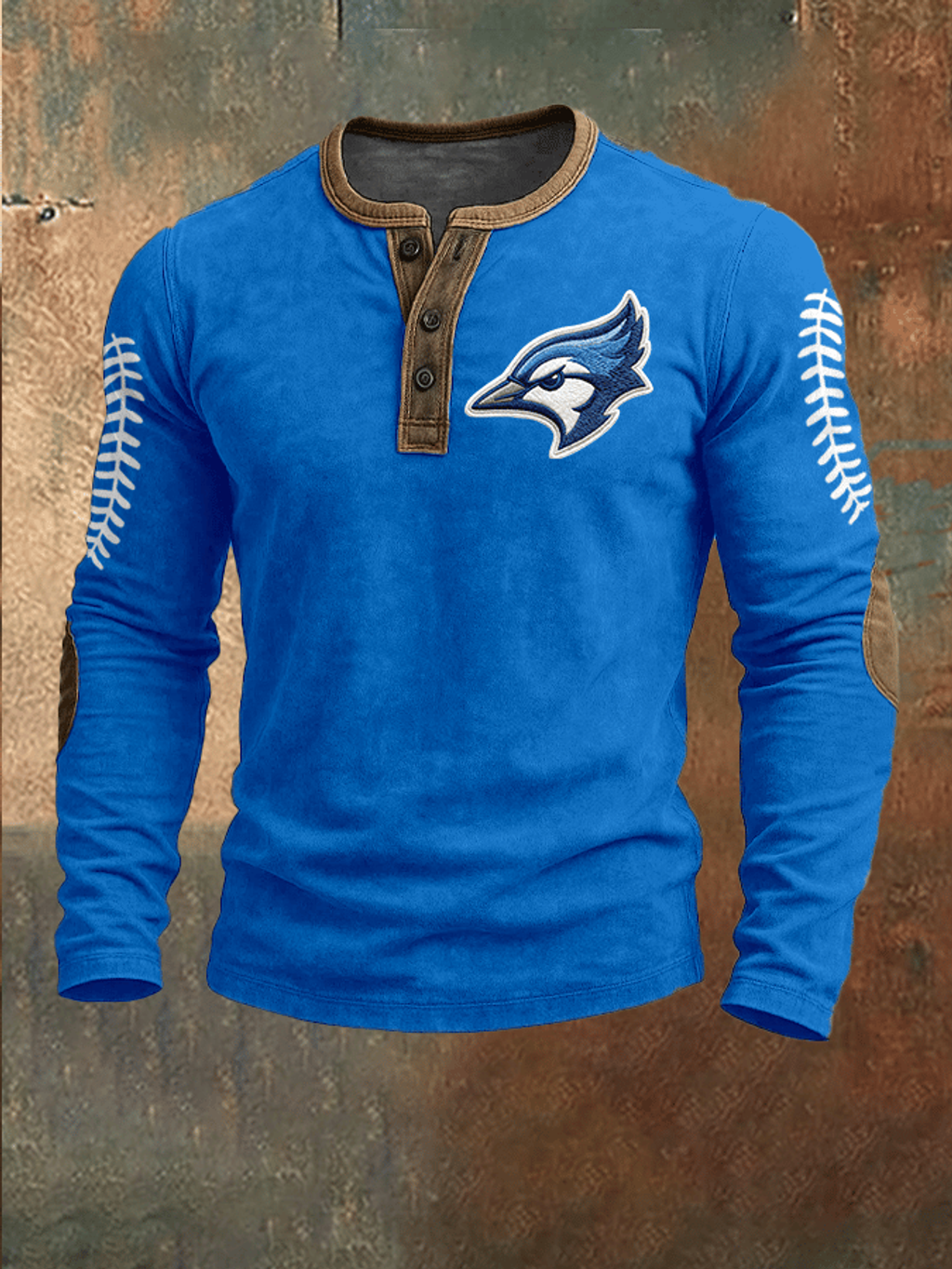 Men's Baseball Print Henley Top