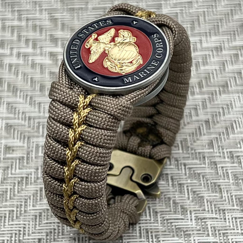 🎁 This is an Marine Corps paracord bracelet. Gold plated Eagle Globe and Anchor. Makes a perfect USMC gift for any veteran or active duty Marine.