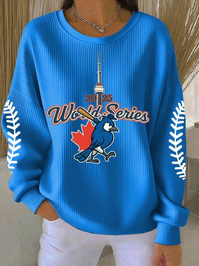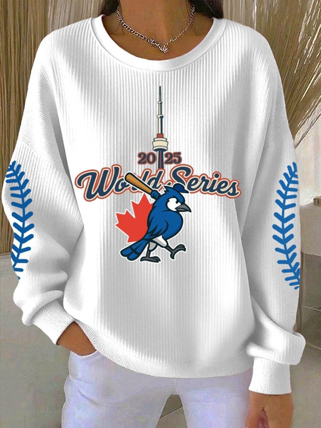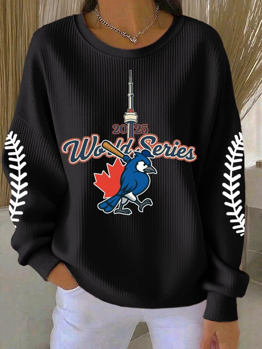Women's Baseball Print Knitted Crew Neck Long Sleeve Top