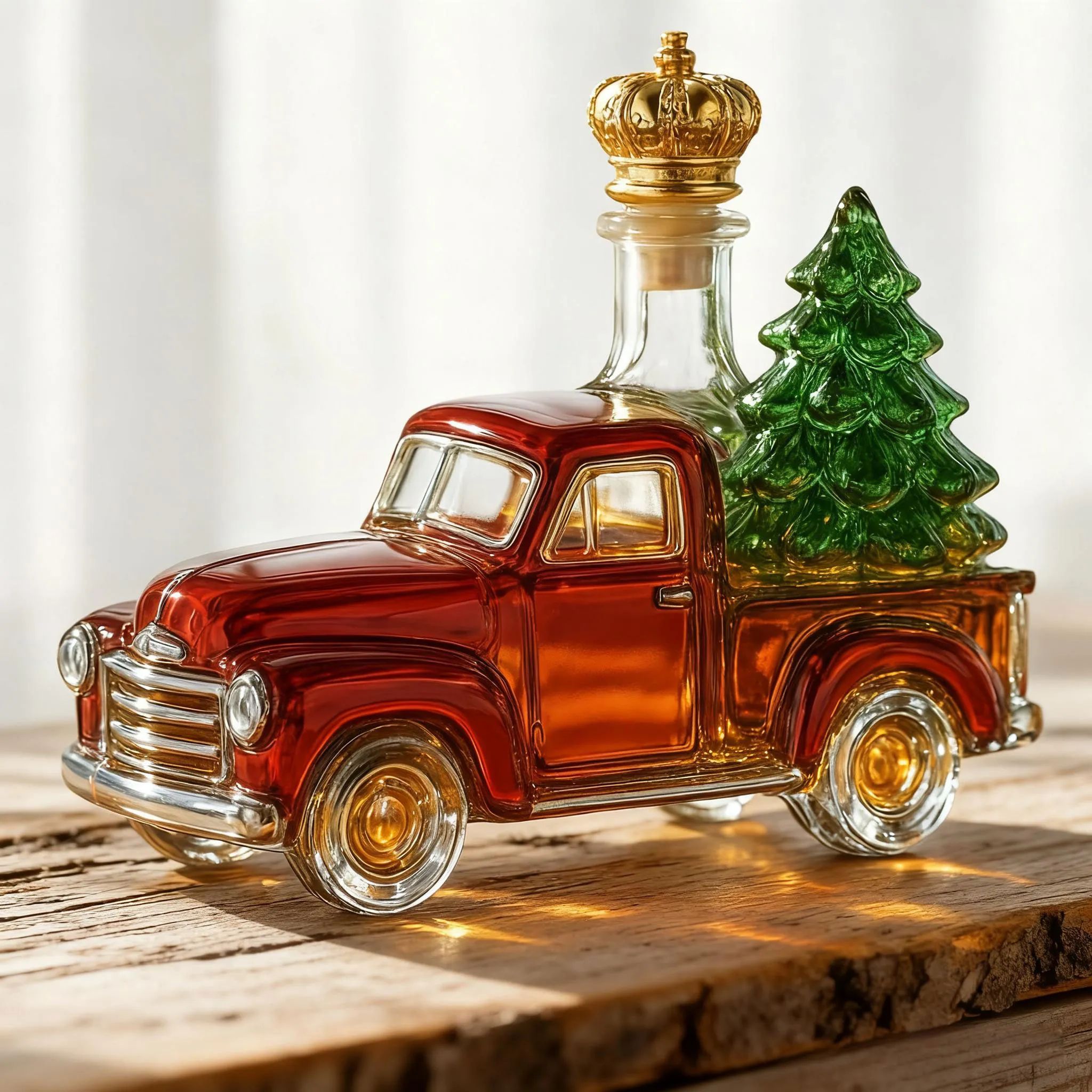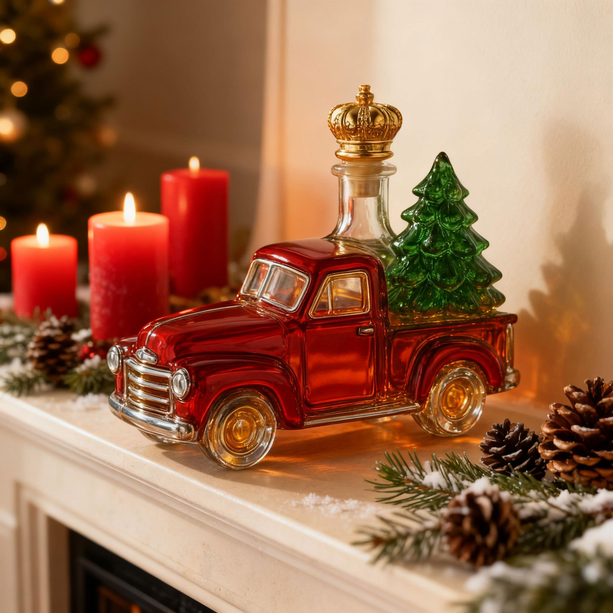 This charming red truck isn’t just décor—it’s a Christmas-themed whiskey decanter shaped like a vintage pickup carrying a holiday tree. Place it anywhere and the whole room fills with warm festive energy, like a cozy scene from a classic holiday movie.